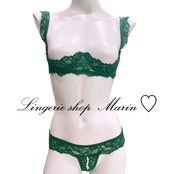 1/4カップのオープンブラ&お尻まで大胆に開いたオープンクロッチショーツの上下セットです。