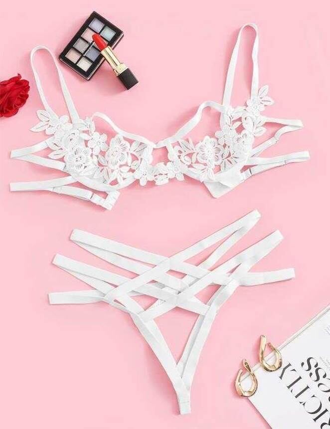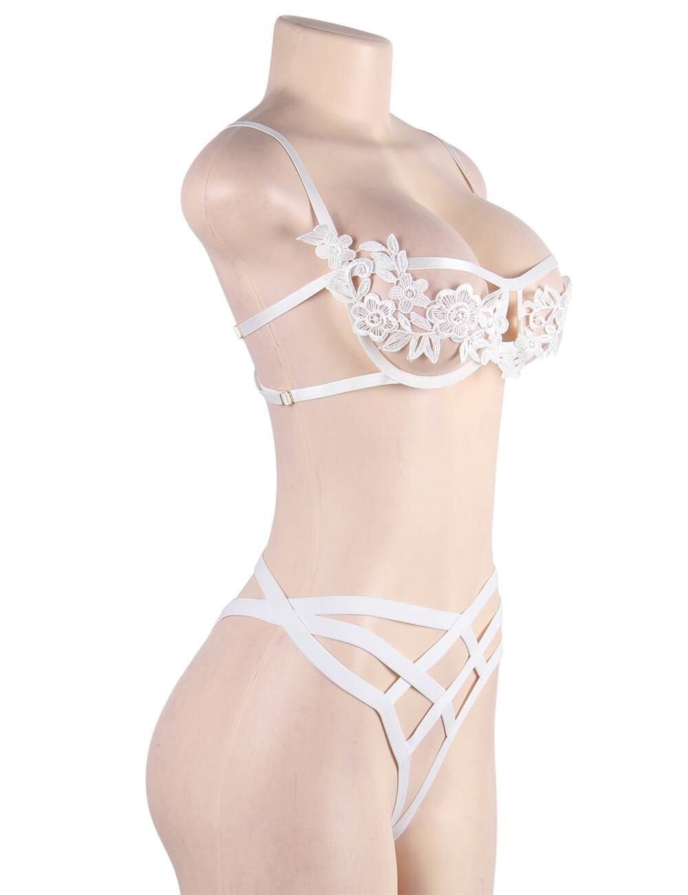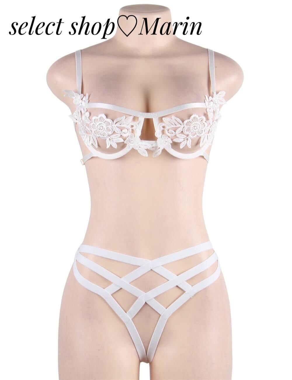BS-16/フラワー刺繍のブラ&ショーツセット/セクシー/ホワイト