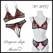 赤いお花の刺繍で、上品さも兼ねそろえているセクシーランジェリーのセットです。