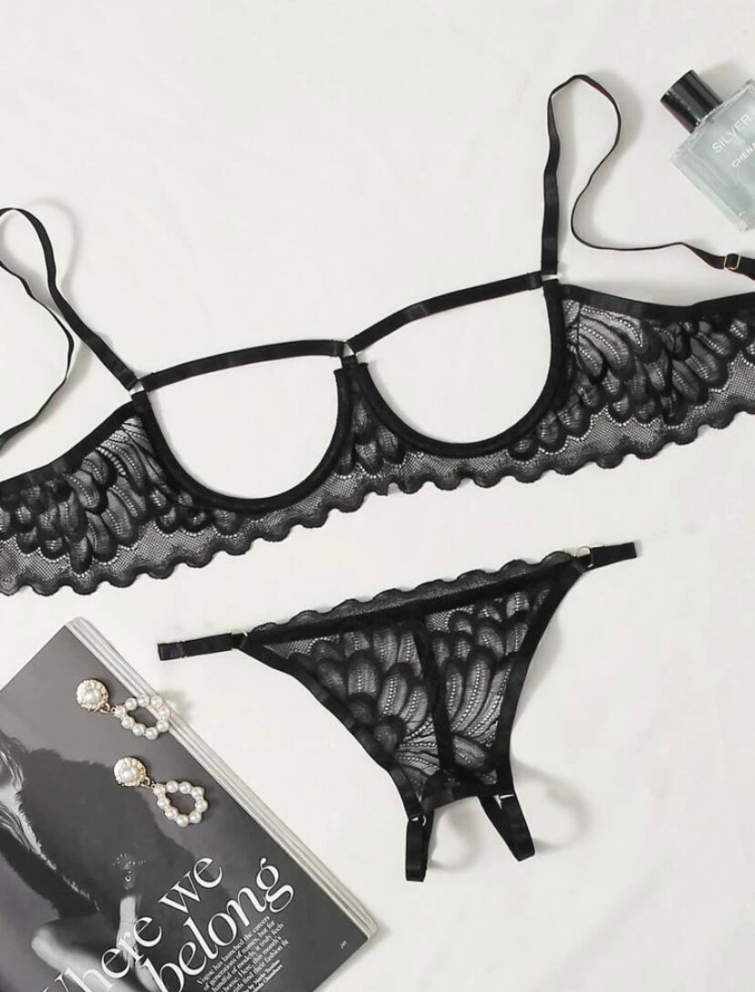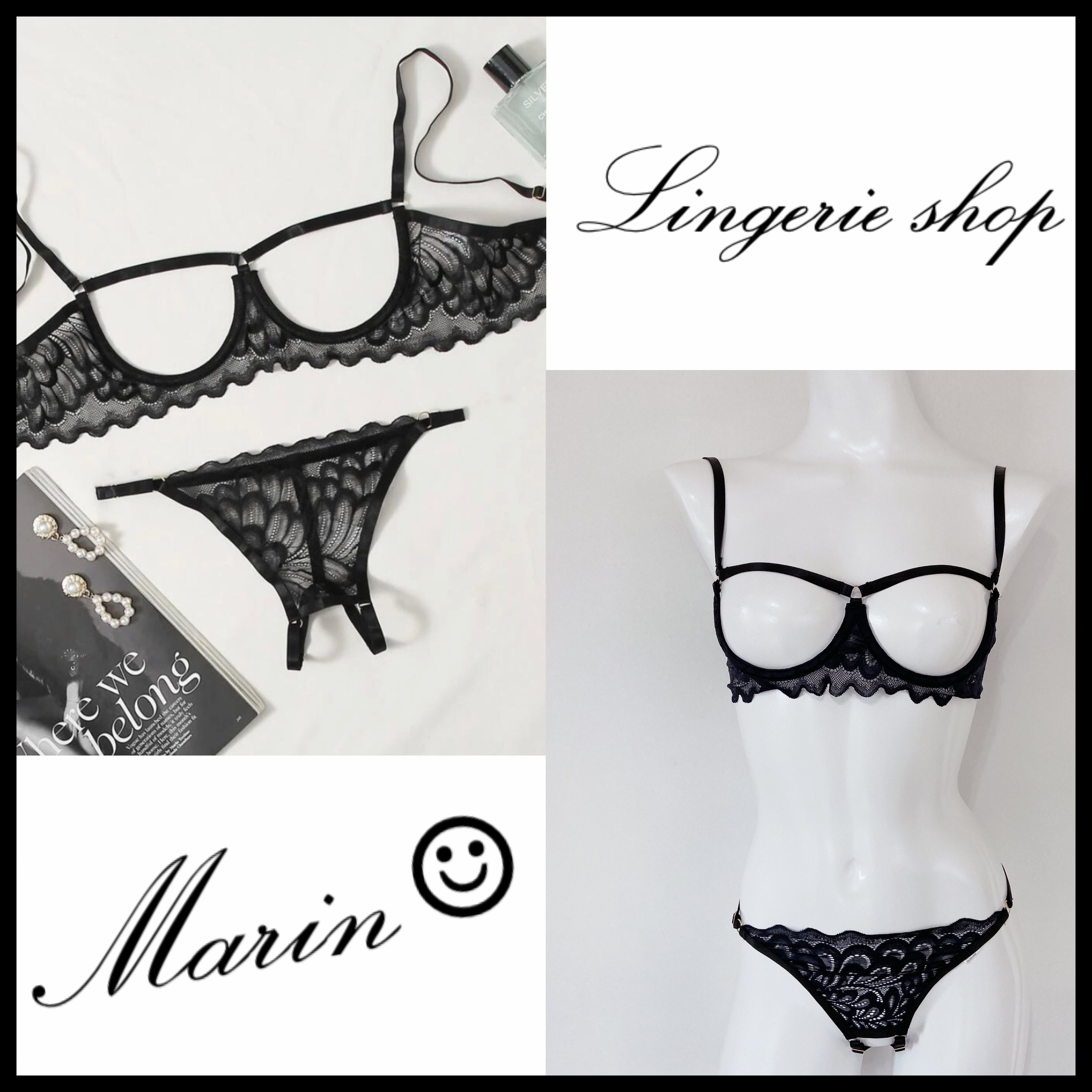 ブラジャーはオープンバスト、ショーツはオープンクロッチタイプ。