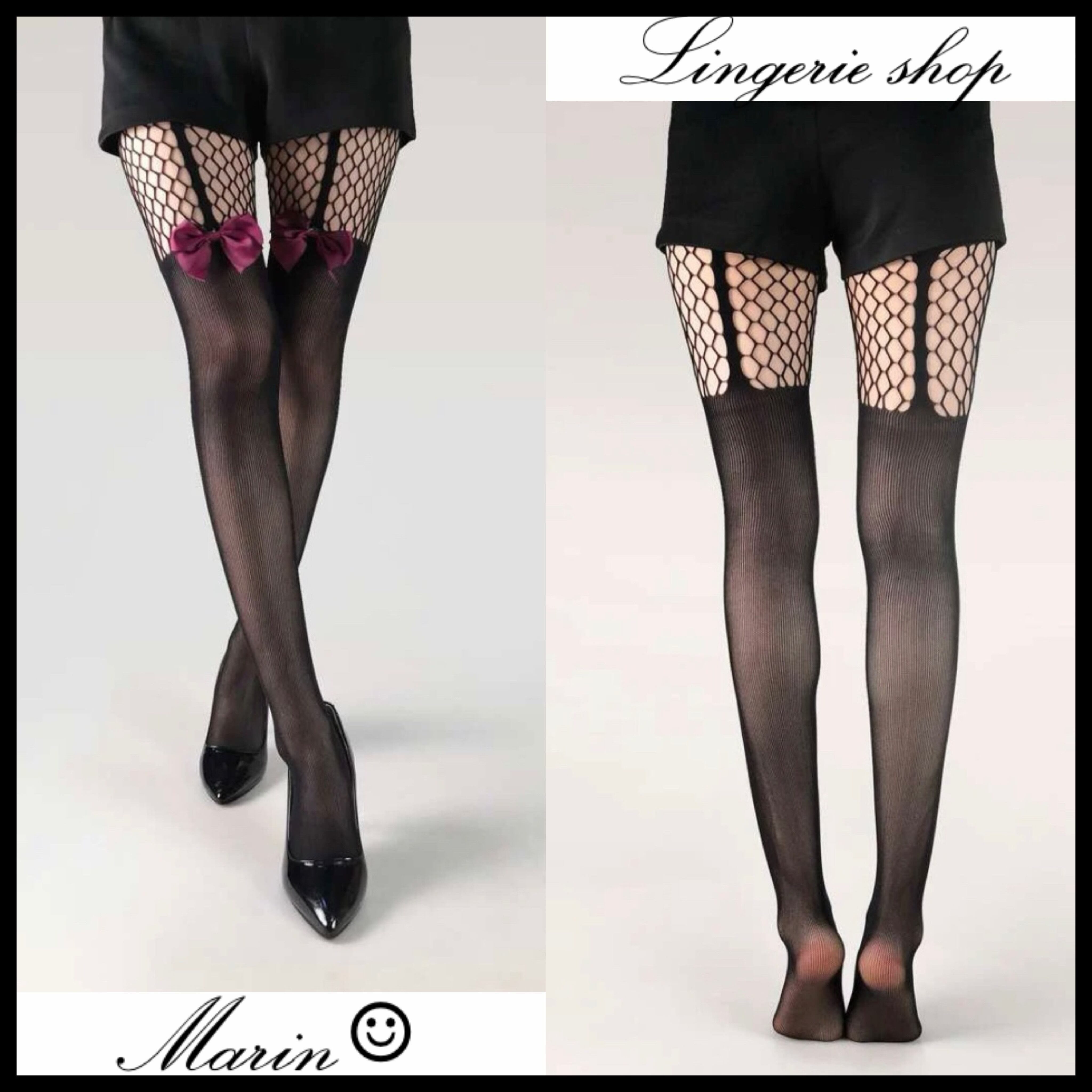 可愛いリボンの付いた個性的でセクシーなストッキング。