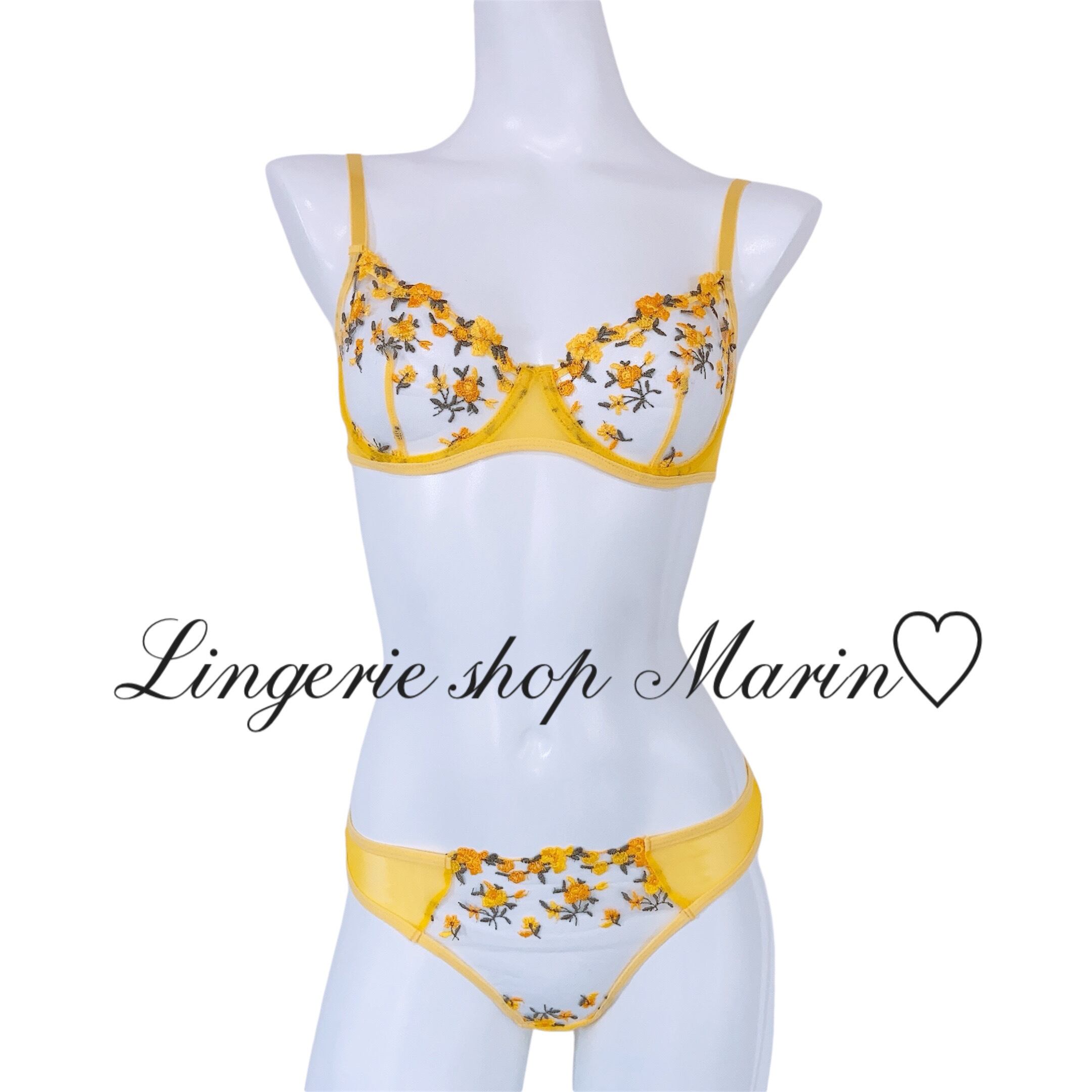 鮮やかな黄色が目を引く、セクシーなイエローランジェリーです。